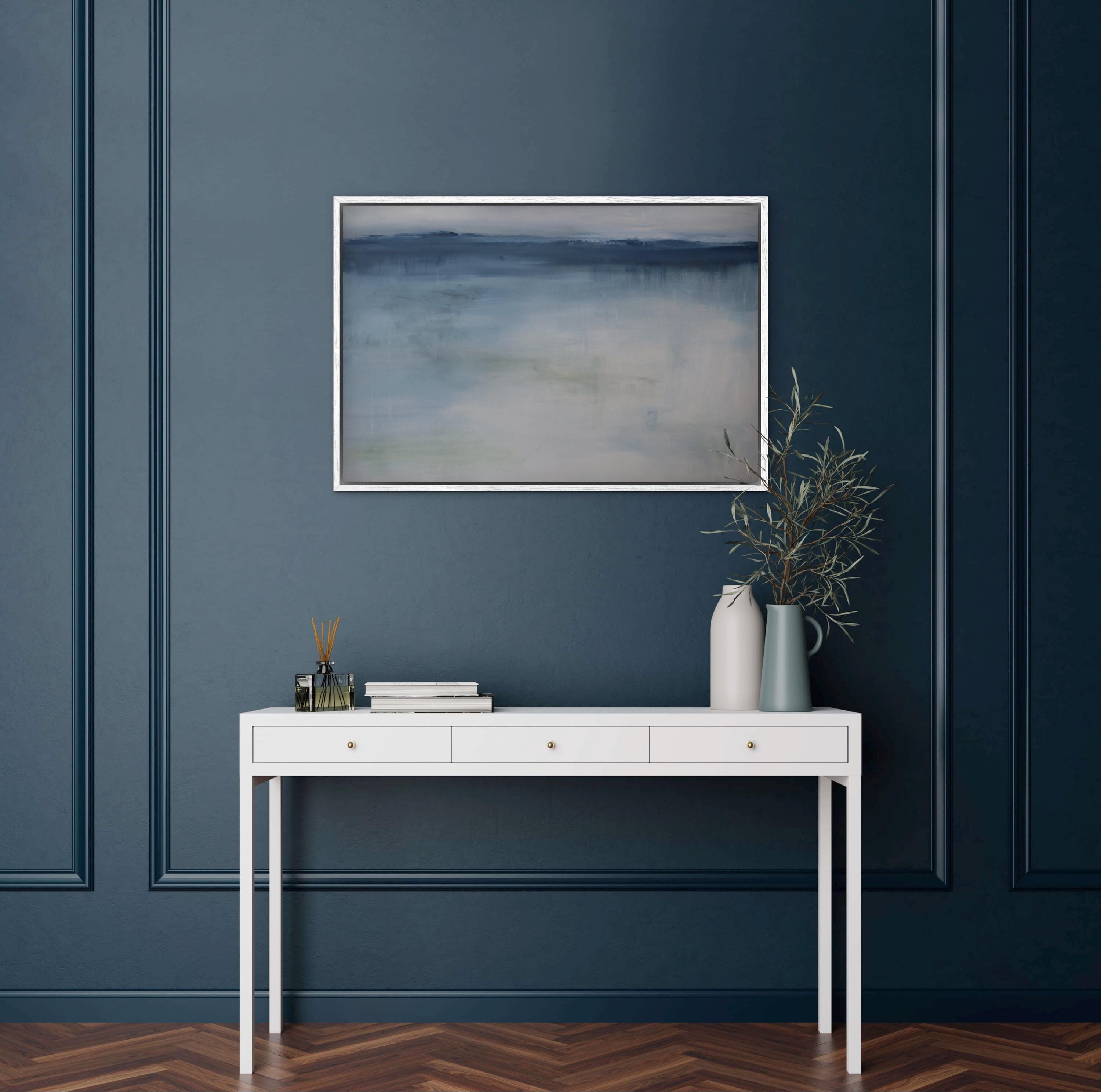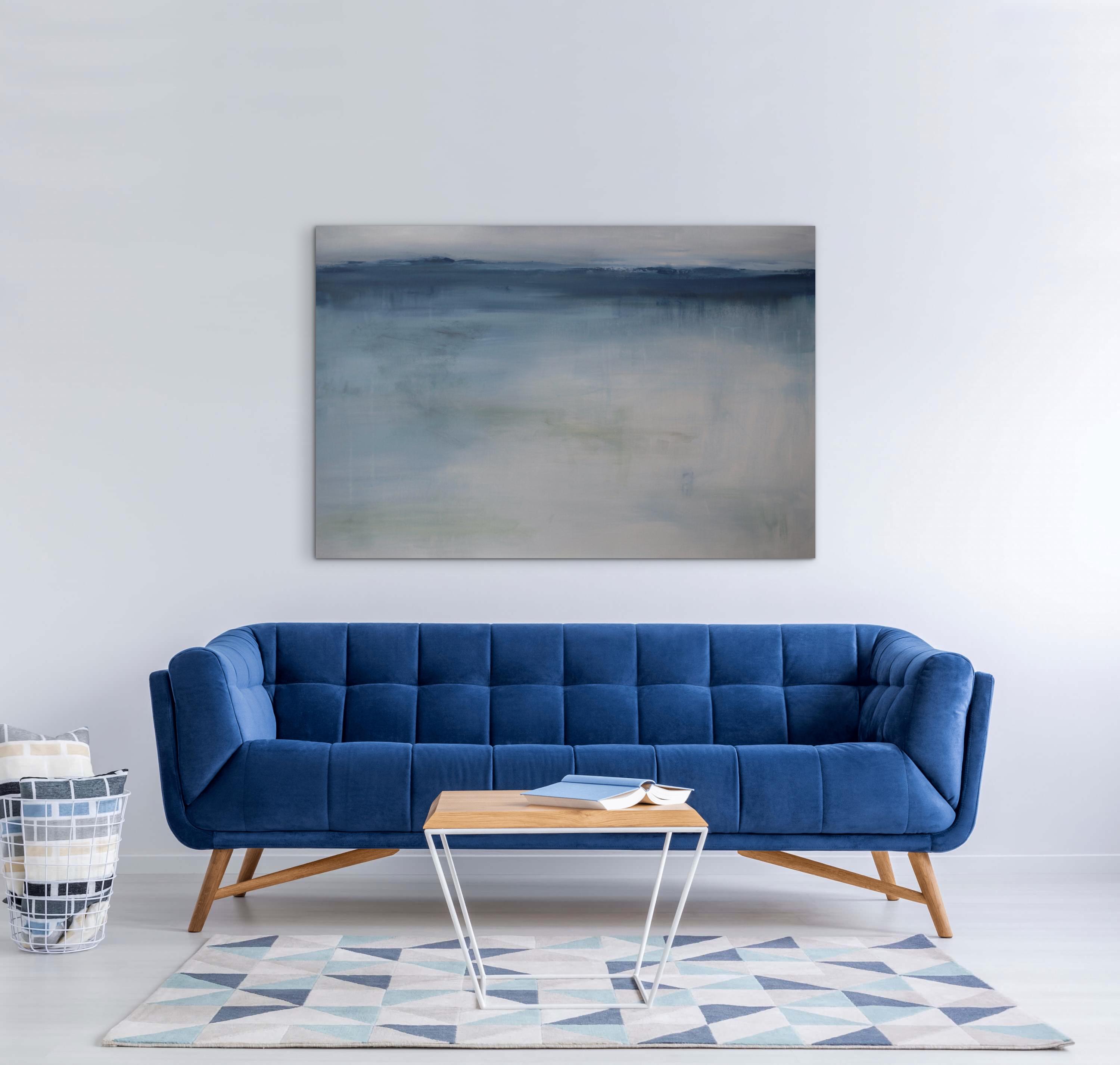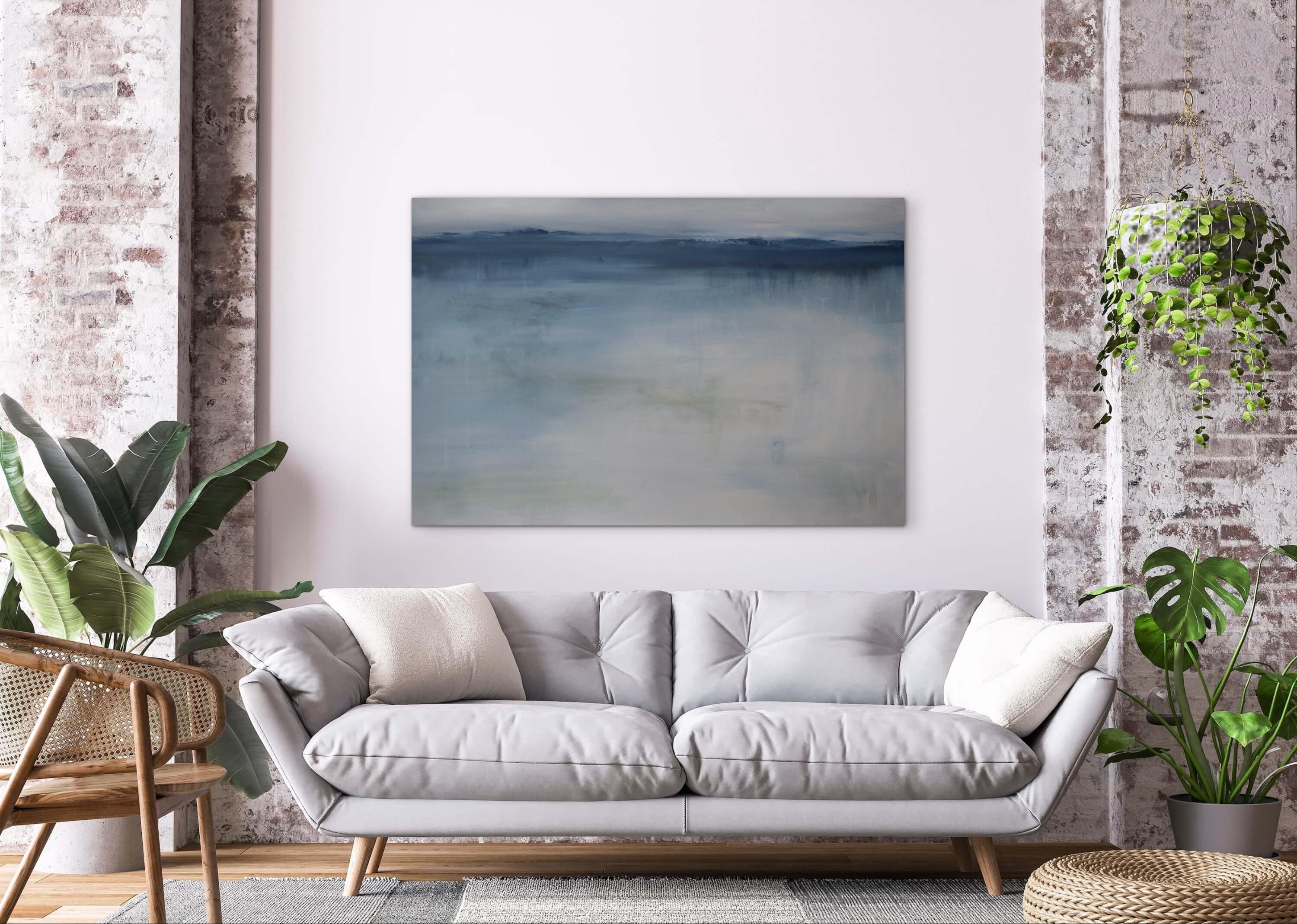 This serene abstract seascape painting moves in quiet layers of blue and breath. Memory becomes an atmospheric presence rather than a fixed image. Depth softens into light, as if something unseen is slowly unfolding —